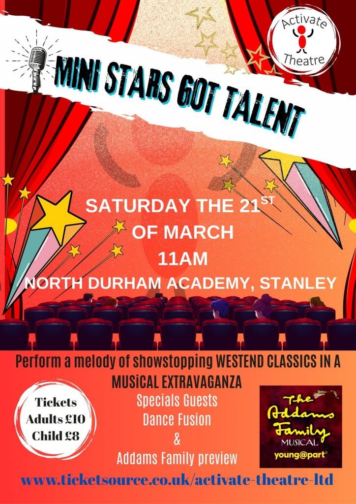 ⭐MINI STARS GOT TALENT- SATURDAY 21ST MARCH AT 11AM AT North Durham Academy, Stanley- All Mini stars groups from Wednesday, Thursday and Saturday classes will perform in this show